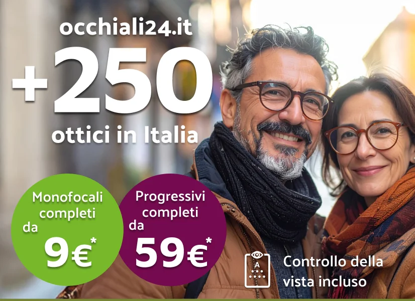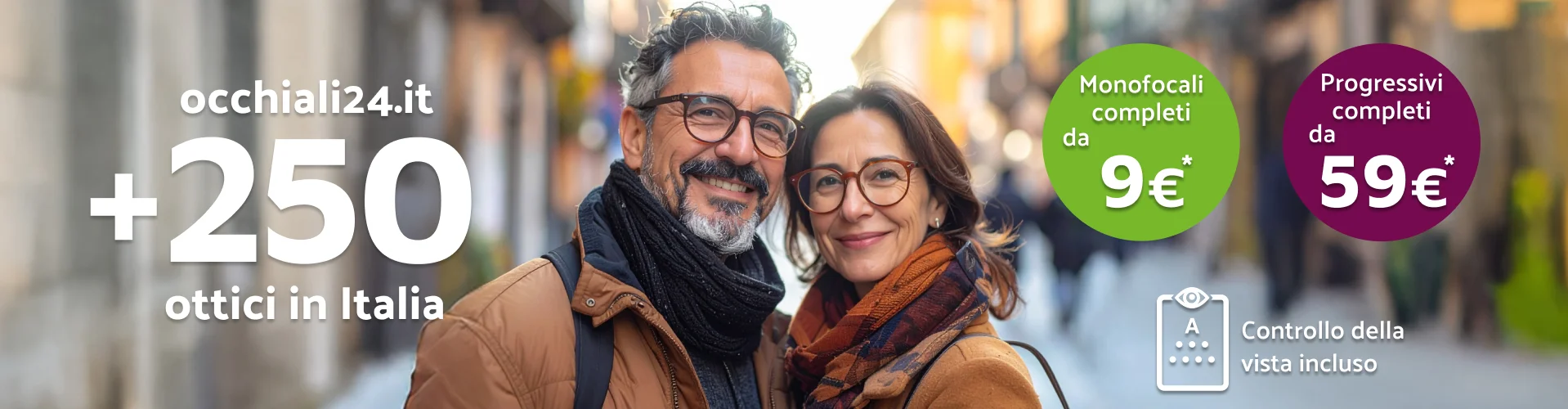 Nel tuo ottico occhiali24.it troverai ogni tipo di prodotto a prezzi imbattibili: occhiali monofocali completi e su misura da 9€, montature di design, lenti progressive Standard, lenti progressive di alta qualità...