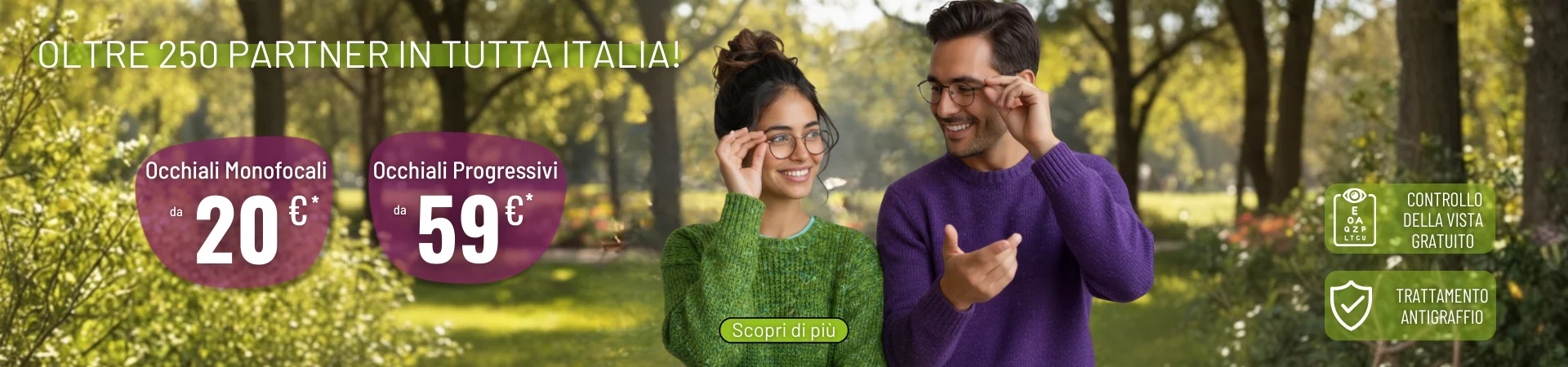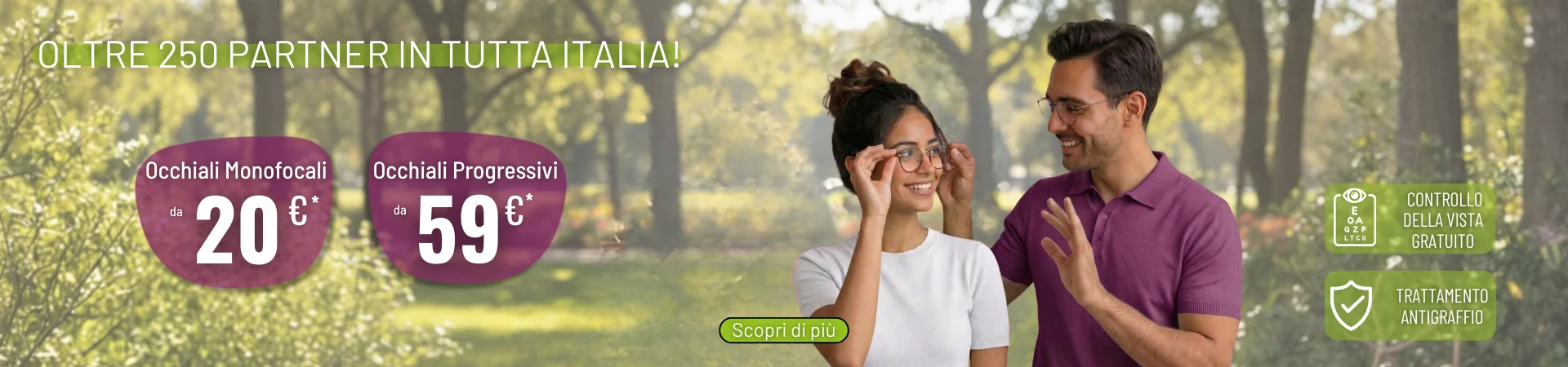 - Controllo professionale della vista e montature inclusi!