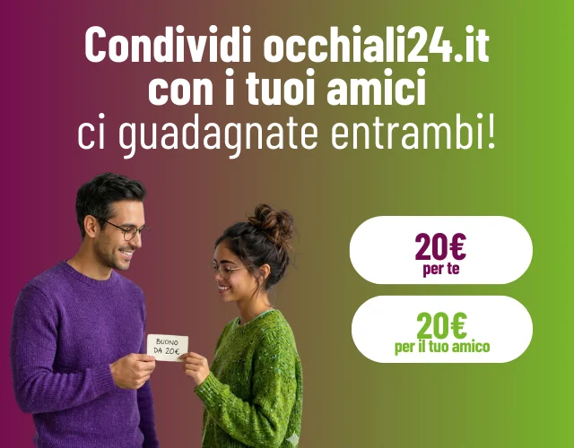 Ti regaliamo 20€ di credito per ogni amico che inviti e il tuo amico ha uno sconto di 20€ per il suo acquisto da occhiali24.it